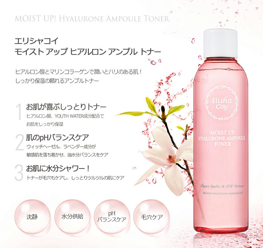 【2018待望の再販☆エリシャコイ公式】【モイストアップヒアルロンアンプルトナー 200ml】elishacoy 化粧水 ヒアルロン酸 マリンコラーゲン ハリ しっかり 保湿 moist up hyalurone ampoule toner韓国コスメ